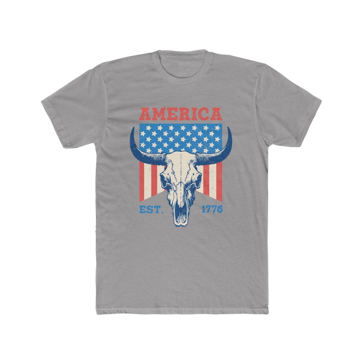 America Est. 1776 Cow Skull Men Cotton Crew Tee