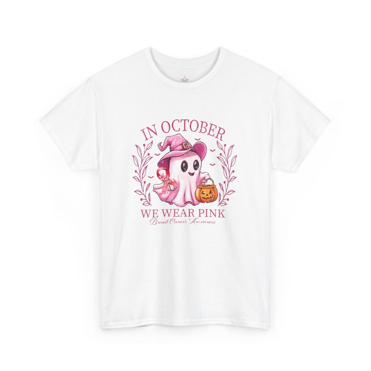 In October We Wear Pink Cute Ghost Graphic Unisex Heavy Cotton Tee