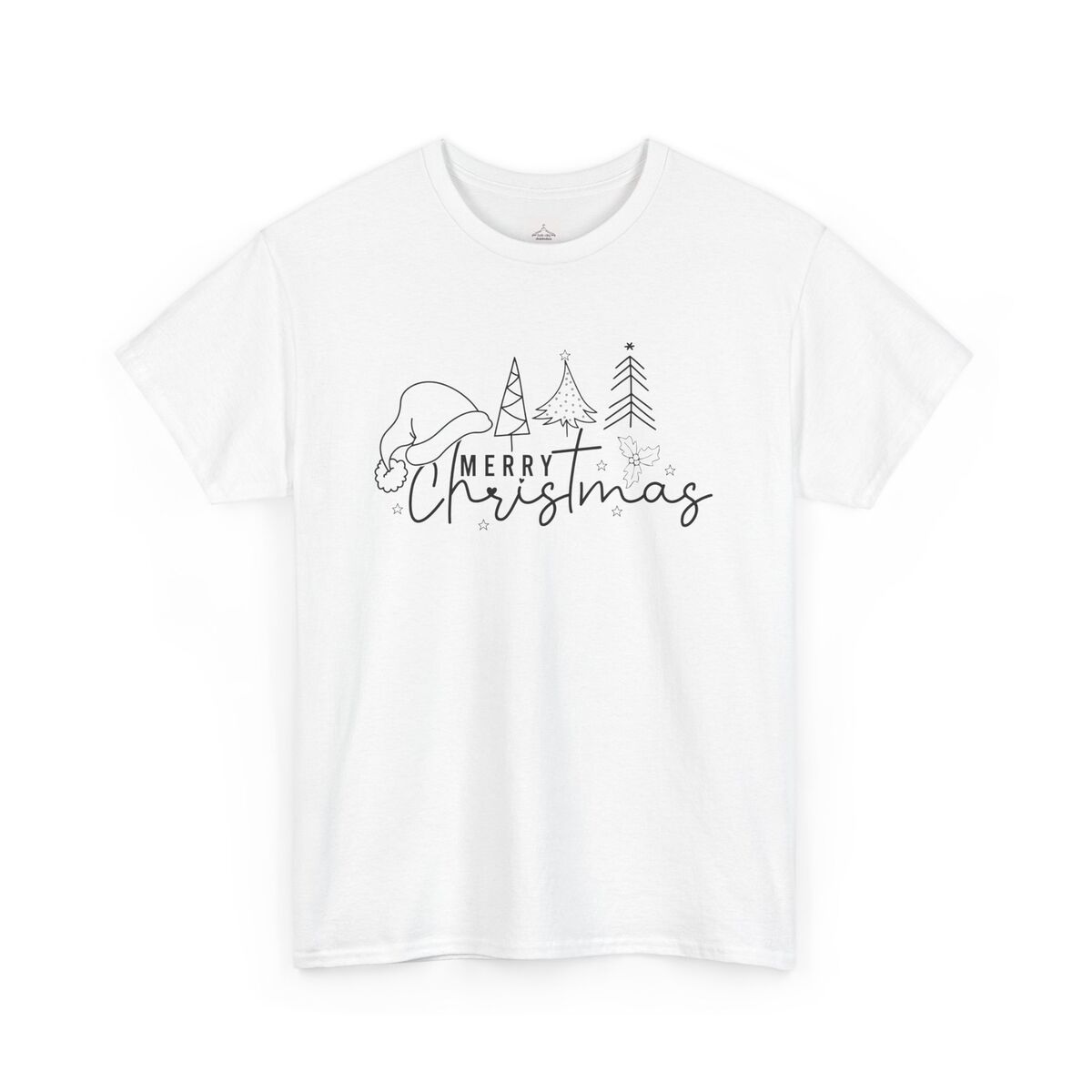 Merry Christmas Fine Line Drawing Unisex Heavy Cotton Tee